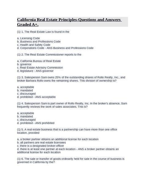YRQ - Reading Online CALIFORNIA REAL ESTATE PRINCIPLES TEST ANSWERS iBooks Open Library